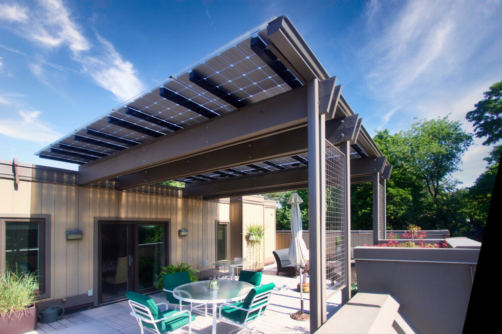 Wolfworks did two projects for us, a whole apartment (condo) renovation and the addition of pergolas with solar panels on two of our rooftop decks. Wolfworks interest in energy efficiency, solar, and design transformed a dated, energy hog 1970s condo into a modern, energy efficient, and comfortable home. The solar pergolas provided much-needed shade on the rooftop decks too and the solar is a bonus.