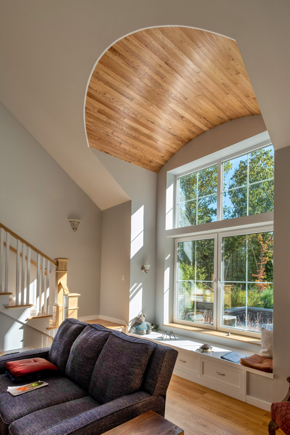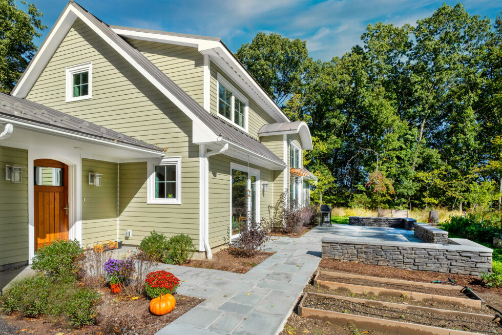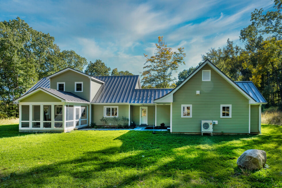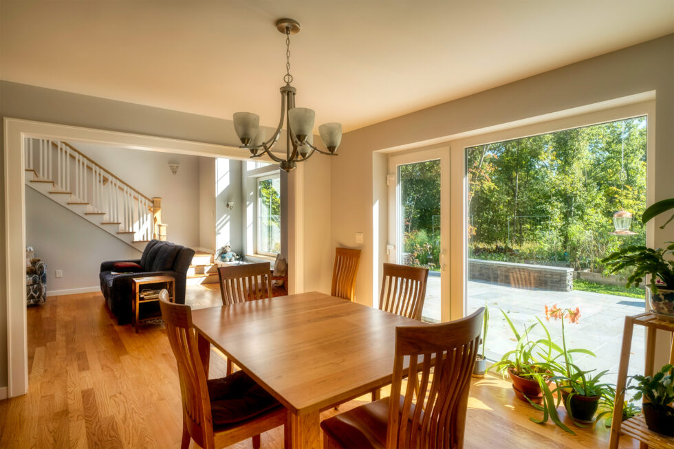 This home was built to align with the environmental values of its owners. It provides one level living, with home office spaces upstairs that can also function as bedrooms. With its clear view of the sun it is oriented to harvest free solar energy, both to contribute to seasonal heating and to produce all the energy the home requires to occupy and use, as well as to anticipate the purchase of an electric vehicle. The home also features an active food garden and a rainwater harvesting system.